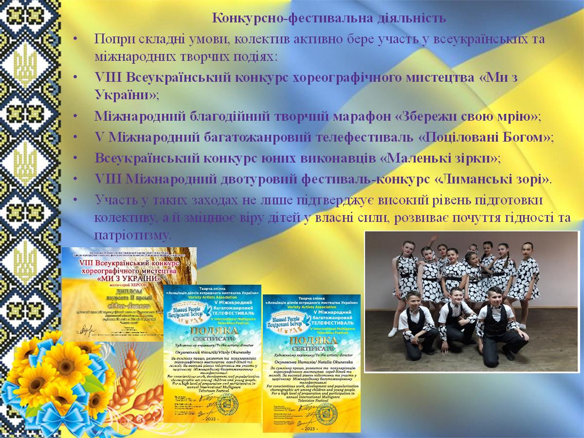 Попри складні умови, колектив активно бере участь у всеукраїнських та міжнародних творчих подіях: