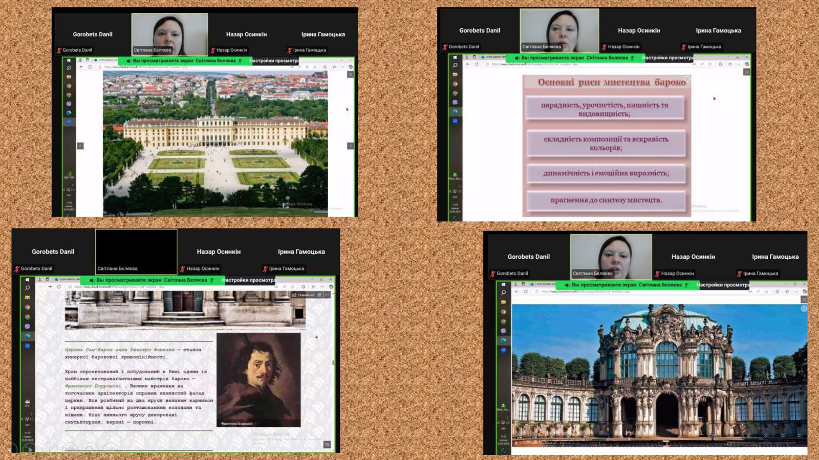А чи здогадувалися ви, що музика Бароко була не менш вишукана, ніж живопис чи архітектура? Композитори того часу, такі як Й.С. Бах та Г. Гендель, створювали складні поліфонічні твори, які вражали своєю красою та технічною досконалістю? На ці та інші питання на уроці з предмету "Художня культура" ліцеїсти 8-МТ та 8-ХО класів разом з вчителькою Світланою Бєляєвою шукали відповіді та віртуально подорожували до архітектурних шедеврів Європи: Церкви базиліка Сан-Карло алле Кваттро Фонтане, собору Святого Петра в Римі та віденського палацу Шенбрунн Австрія.
