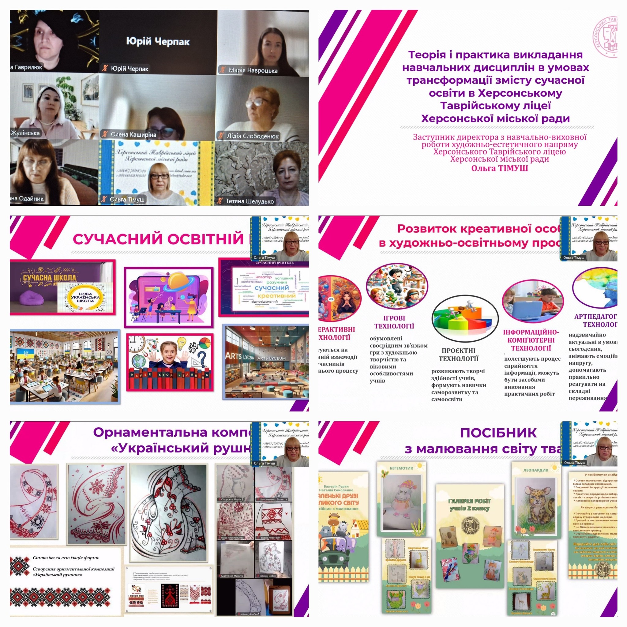 3 квітня 2025р.на базі ХАНО було проведено ІІ Всеукраїнську науково-практичну онлайн-конференцію «ТЕНДЕНЦІЇ ТА ПЕРСПЕКТИВИ РОЗВИТКУ СУЧАСНОЇ ОСВІТИ В УКРАЇНІ: НОВА УКРАЇНСЬКА ШКОЛА». Заступниця директора з навчально-виховної роботи Ольга ТІМУШ поділилась досвідом роботи Херсонського Таврійського ліцею, розкрила питання теорії та практики викладання навчальних дисциплін в умовах трансформації змісту сучасної освіти.