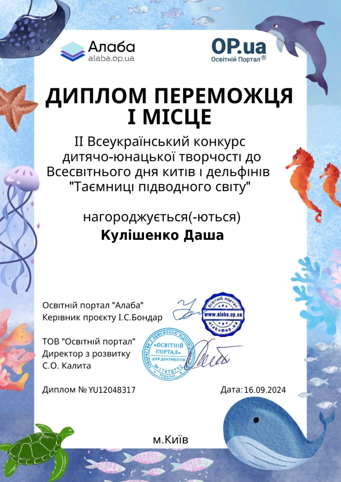 II Всеукраїнський конкурс дитячо-юнацької творчості до Всесвітнього дня китів і дельфінів "Таємниці підводного світу" II Всеукраїнський конкурс дитячо-юнацької творчості до Всесвітнього дня китів і дельфінів