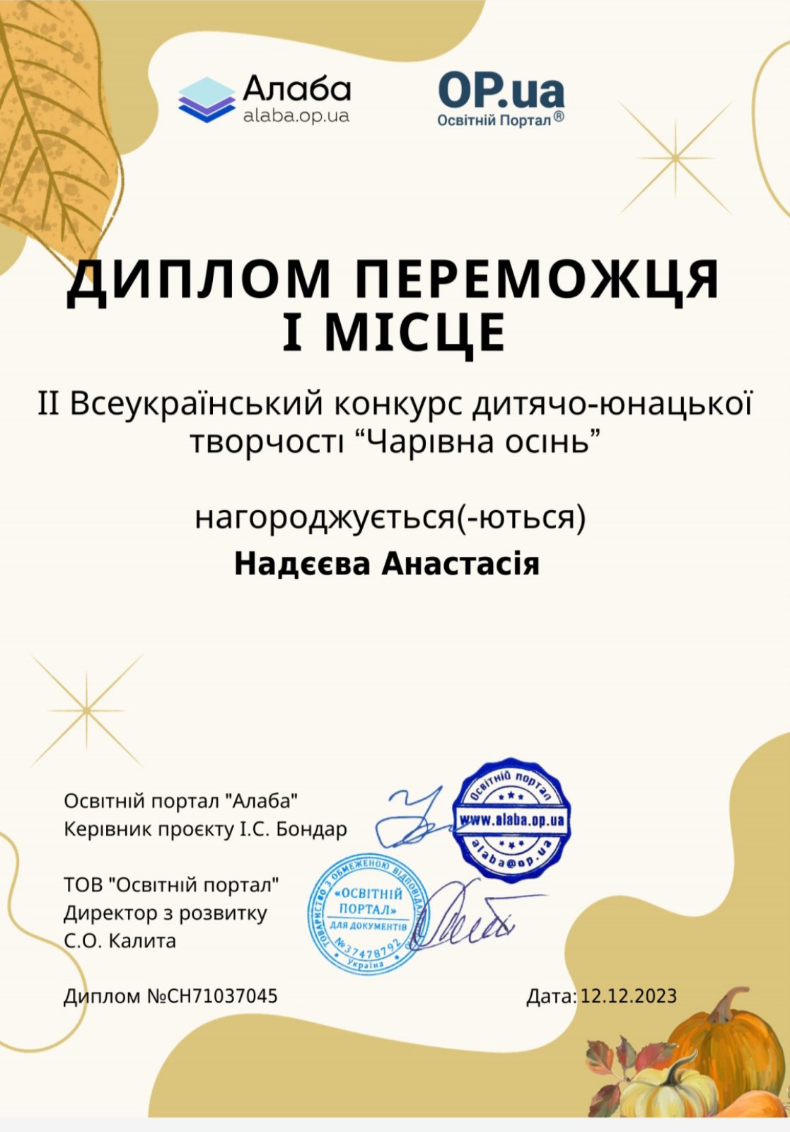 Конкурс мистецтв "Чарівна осінь" Конкурс мистецтв