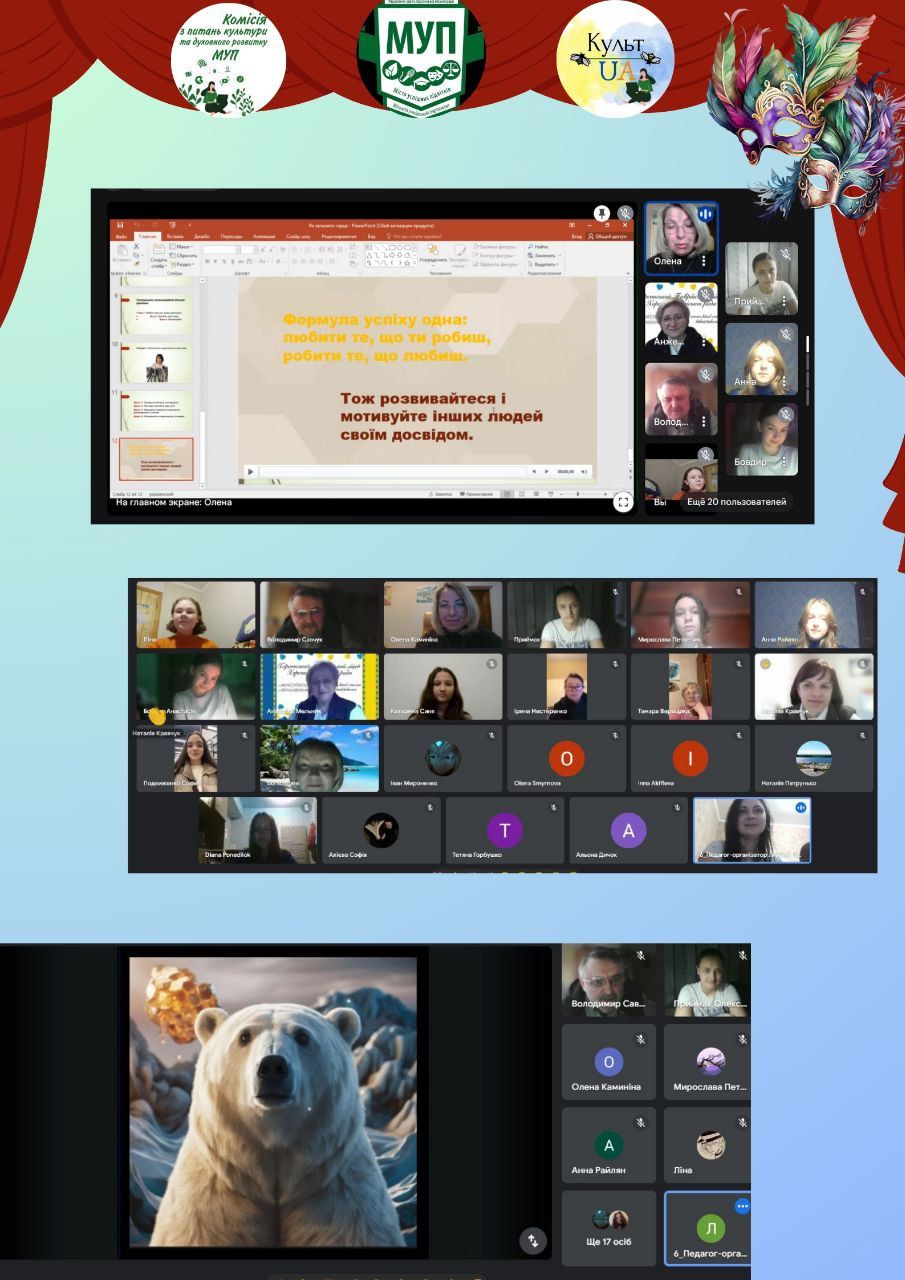 27.03.2025 Комісія з питань культури та духовного розвитку провела майстер-клас на тему: "Як запалити серця: мотиваційні промови - секрети надихаючих виступів", де спікерами були вчителі з Таврійського ліцею мистецтв Херсонської міської ради Олена КАМИНІНА, Володимир САВЧУК та Анжеліка МЕЛЬНИК.