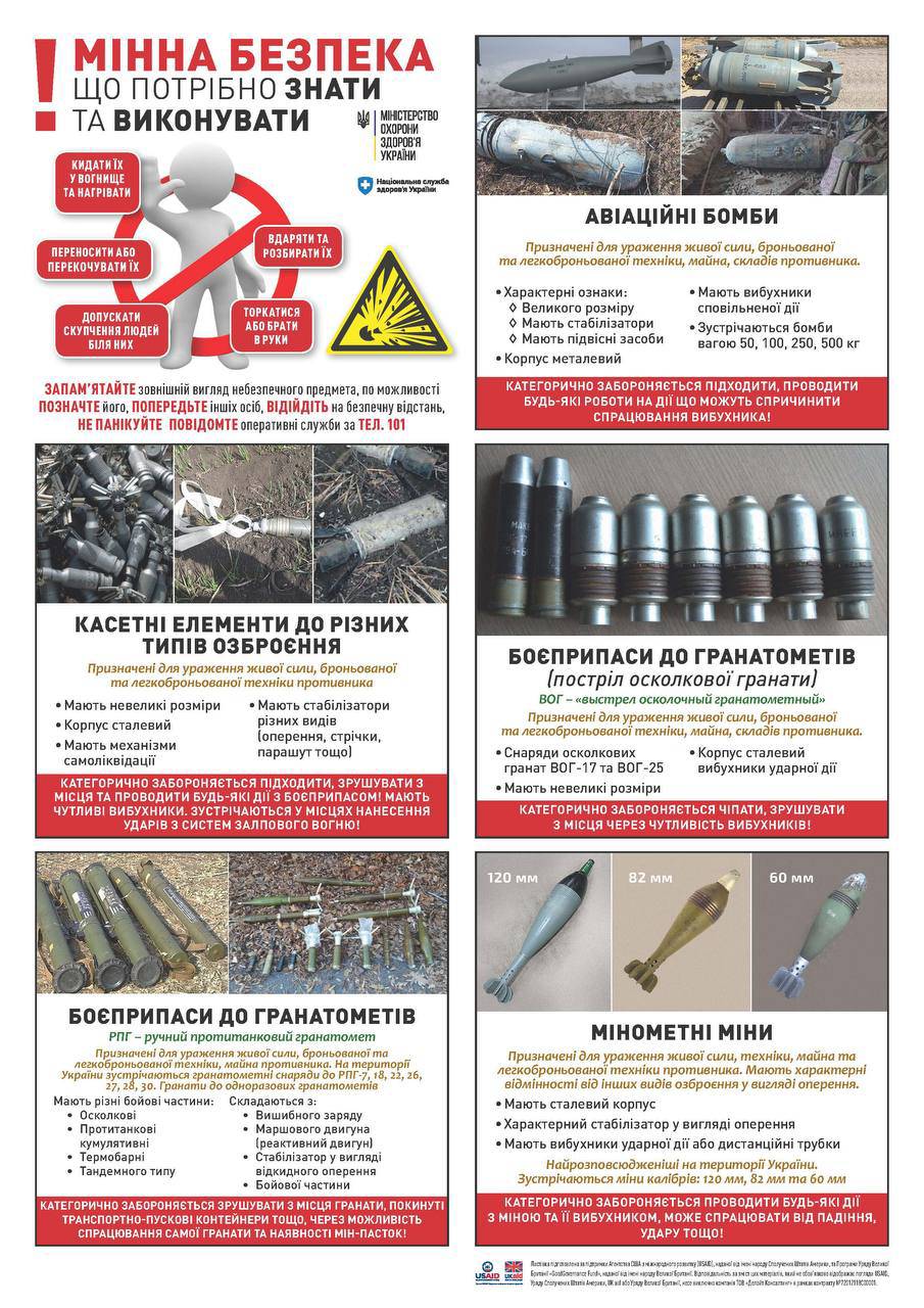 Україна є однією з найбільш постраждалих від мін країною. Розмінування замінованих територій України може тривати десятки років. Вони можуть бути будь-де. На вулиці та на узбіччі. У лісі та біля річки. На дитячому майданчику та просто у вашому дворі.