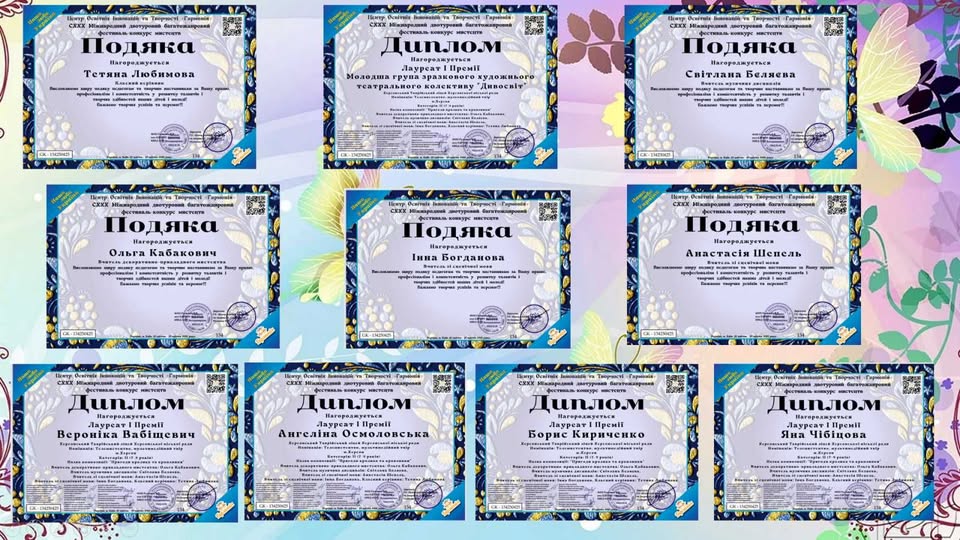 Щирі вітання молодшій групі зразкового художнього театрального колективу “Дивосвіт” з блискучою перемогою на Міжнародному фестивалі-конкурсі мистецтв “Наша люба Україна”!