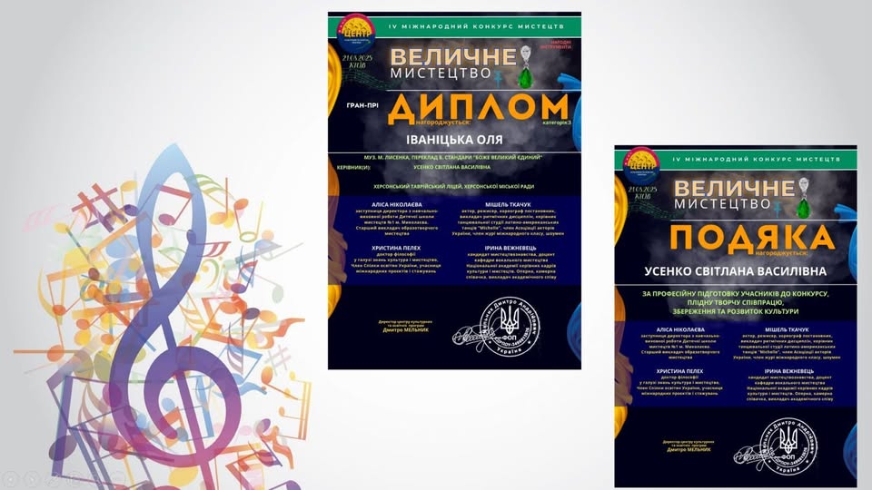 Щира подяка керівнику Усенко С.В. за натхненну працю та підтримку таланту!