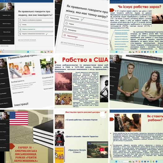 Окремо під час вивчення твору американської письменниці Гарпер Лі ,,Убити пересмішника" дев'ятикласники обговорили питання рабства та расової дискримінації в минулому та ставлення до цих питань у сучасному суспільстві.
