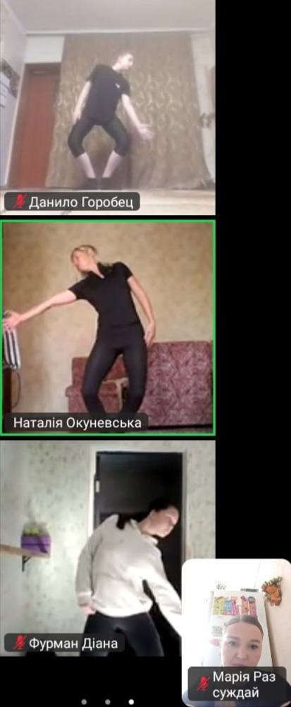 Навіть в онлайн-форматі наші учні із захопленням працювали над новими рухами, уважно слухали поради вчителя та старанно відточували кожен крок.