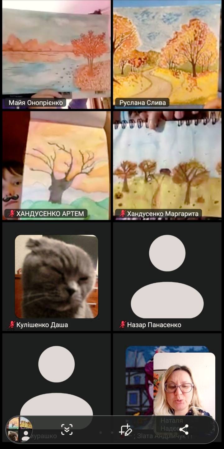 На уроці живопису учні передавали красу цієї пори року у своїх осінніх натюрмортах — з теплими кольорами, гарбузами, яблуками та листям.