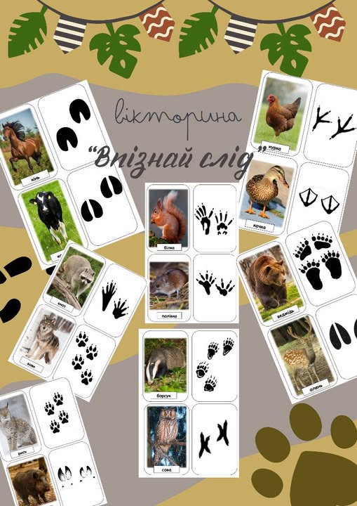 Запрошуємо тебе до захопливої вікторини "Впізнай слід", де можна перевірити свої знання про тваринний світ України!