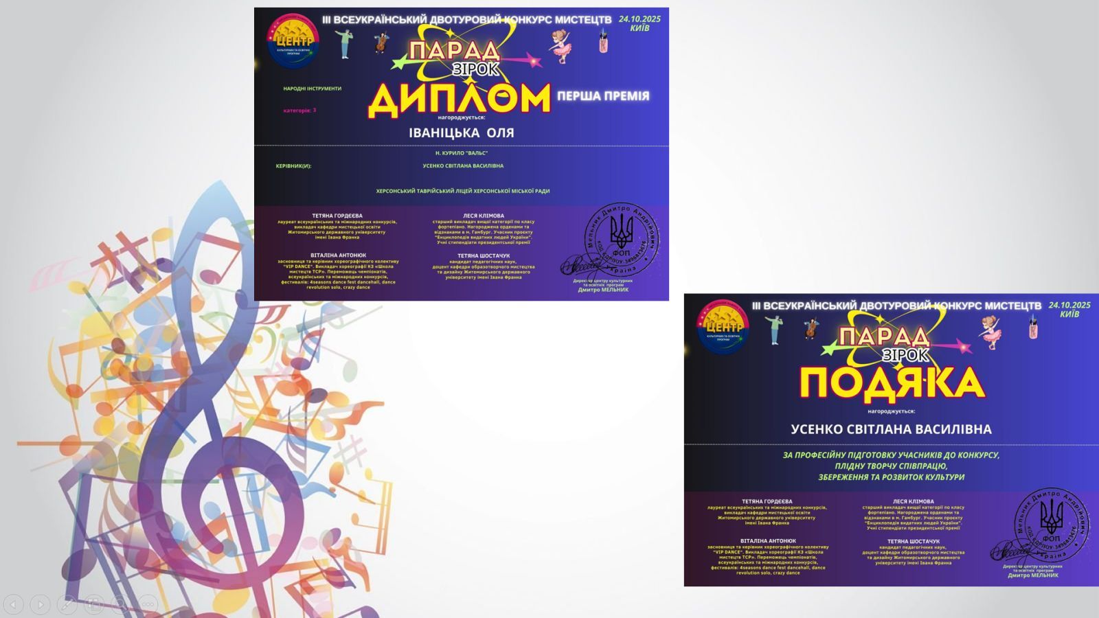 Іваницька Ольга здобула Диплом Першої Премії у Всеукраїнському двотуровому конкурсі мистецтв "ПАРАД ЗІРОК" у жанрі «Народні інструменти»!