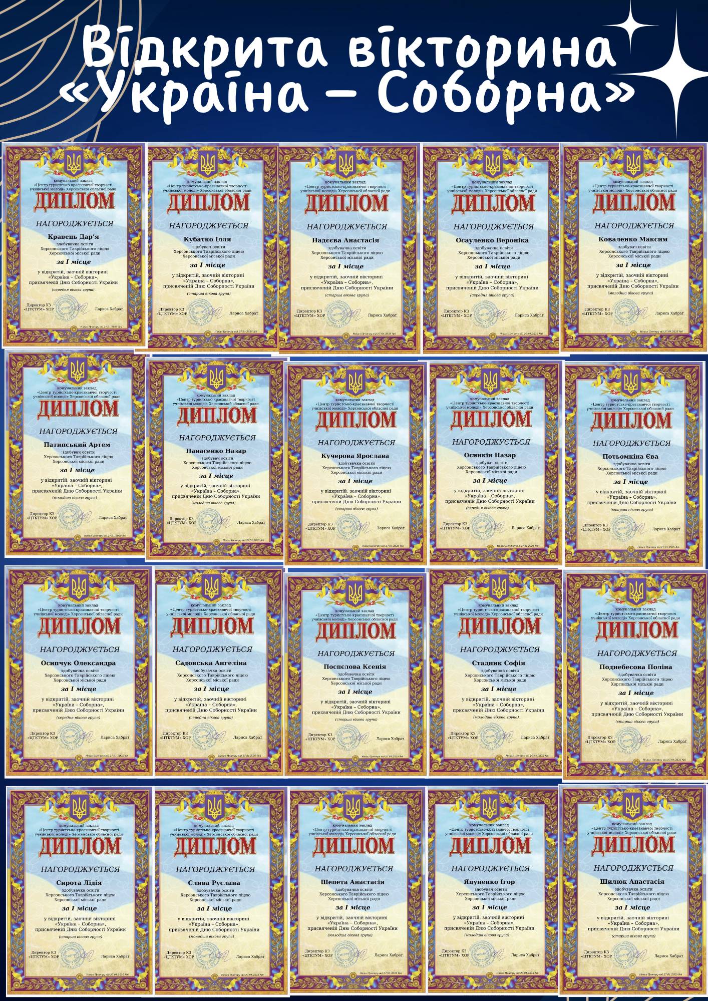 Вітаємо переможців та учасників відкритої вікторини «Україна – Соборна»!