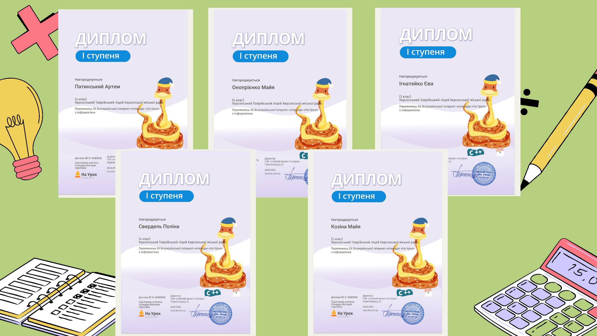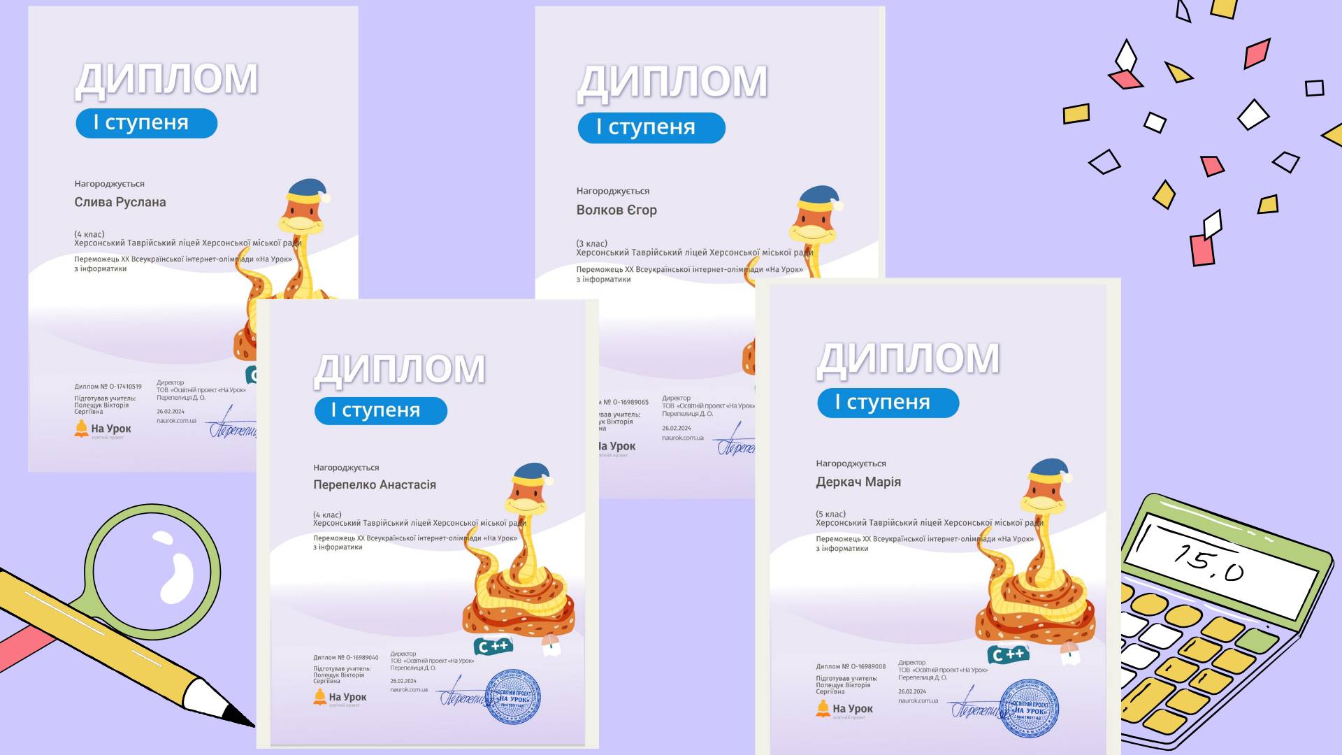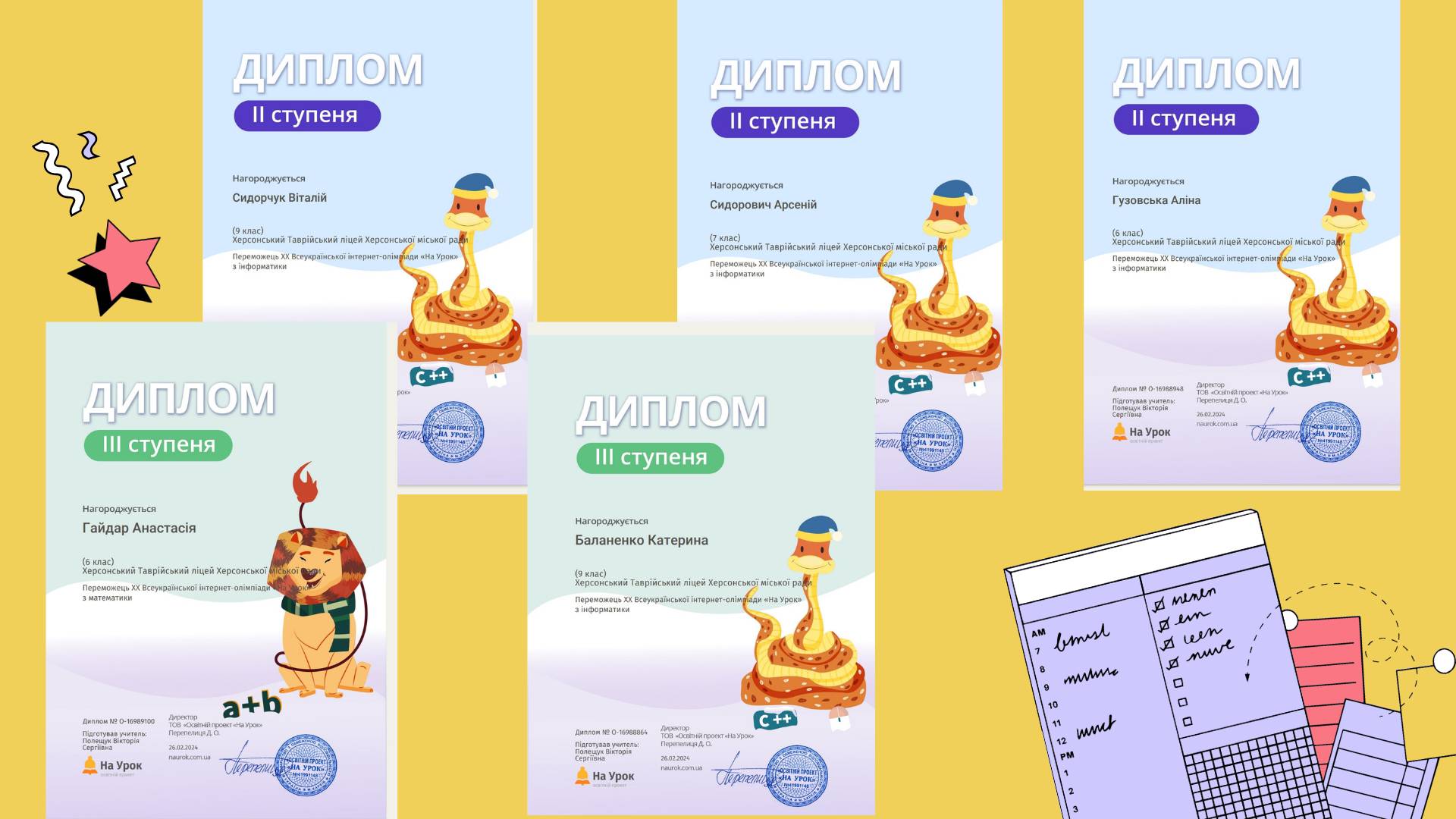 Вітання переможцям Усеукраїнської інтернет-олімпіади «На Урок» з інформатики та математики (вч. Вікторія ПОЛЕЩУК)