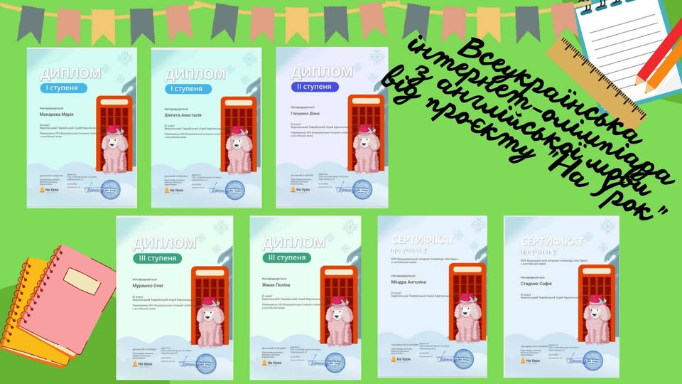 Наші п'ятикласники взяли участь у Всеукраїнській інтернет-олімпіаді з англійської мови від освітнього проєкту "На Урок" і здобули чудові результати!