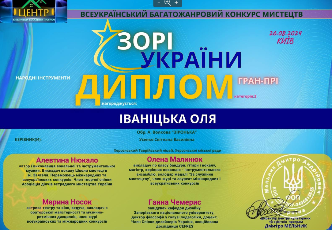 Всеукраїнський багатожанровий конкурс мистецтв "Зорі УКраїни" Всеукраїнський багатожанровий конкурс мистецтв
