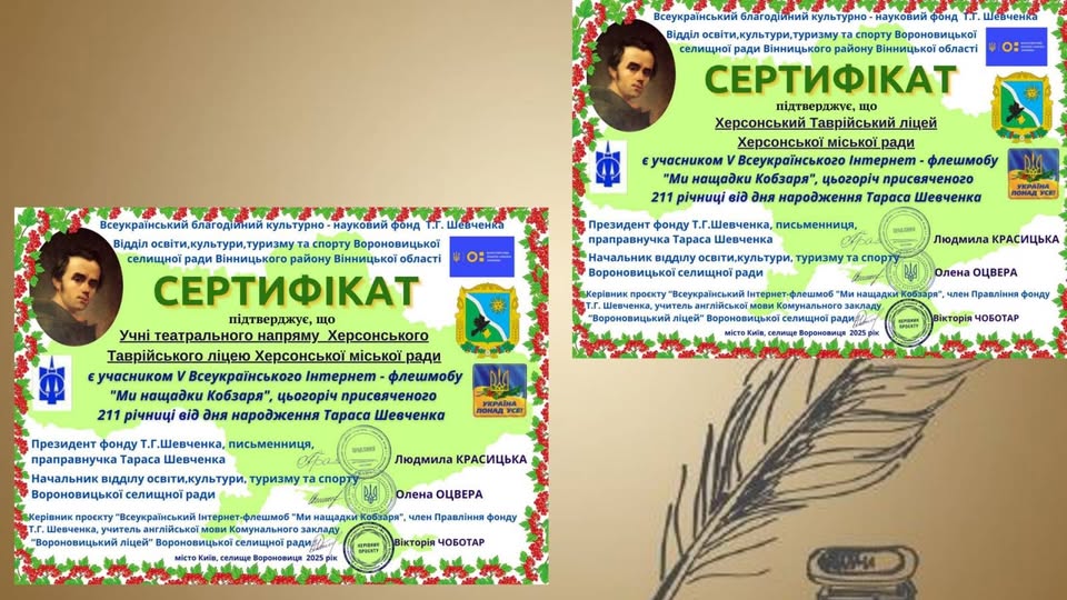 Одразу два відео — учнівське та педагогічне — стали учасниками Всеукраїнського інтернет-флешмобу «Ми — нащадки Кобзаря», присвяченого 211-й річниці з дня народження Тараса Шевченка.