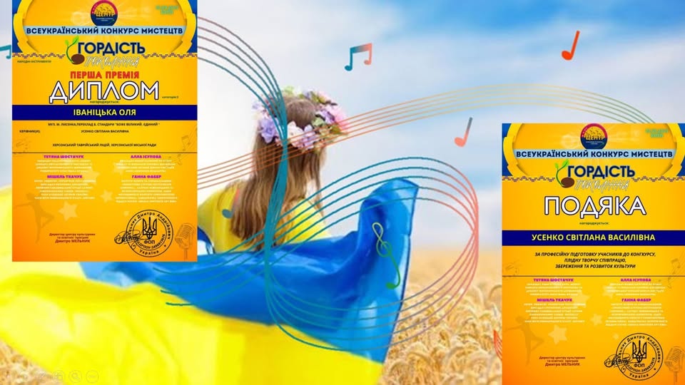 Це високе визнання — результат твоєї праці, таланту та щирої любові до мистецтва!