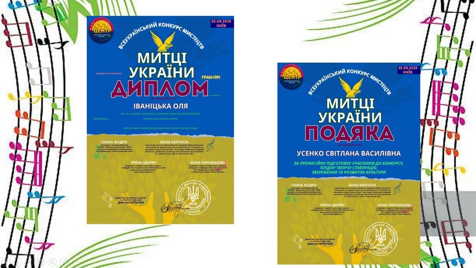 Щиро радіємо новій перемозі нашої талановитої учениці – Іваніцька Ольга здобула Диплом Гран-Прі премії у Всеукраїнському конкурсі "Митці України"!