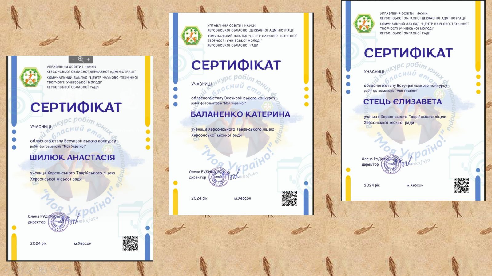 Шилюк Анастасія, Баланенко Катерина, Стець Єлизавета отримали сертифікати учасниць.