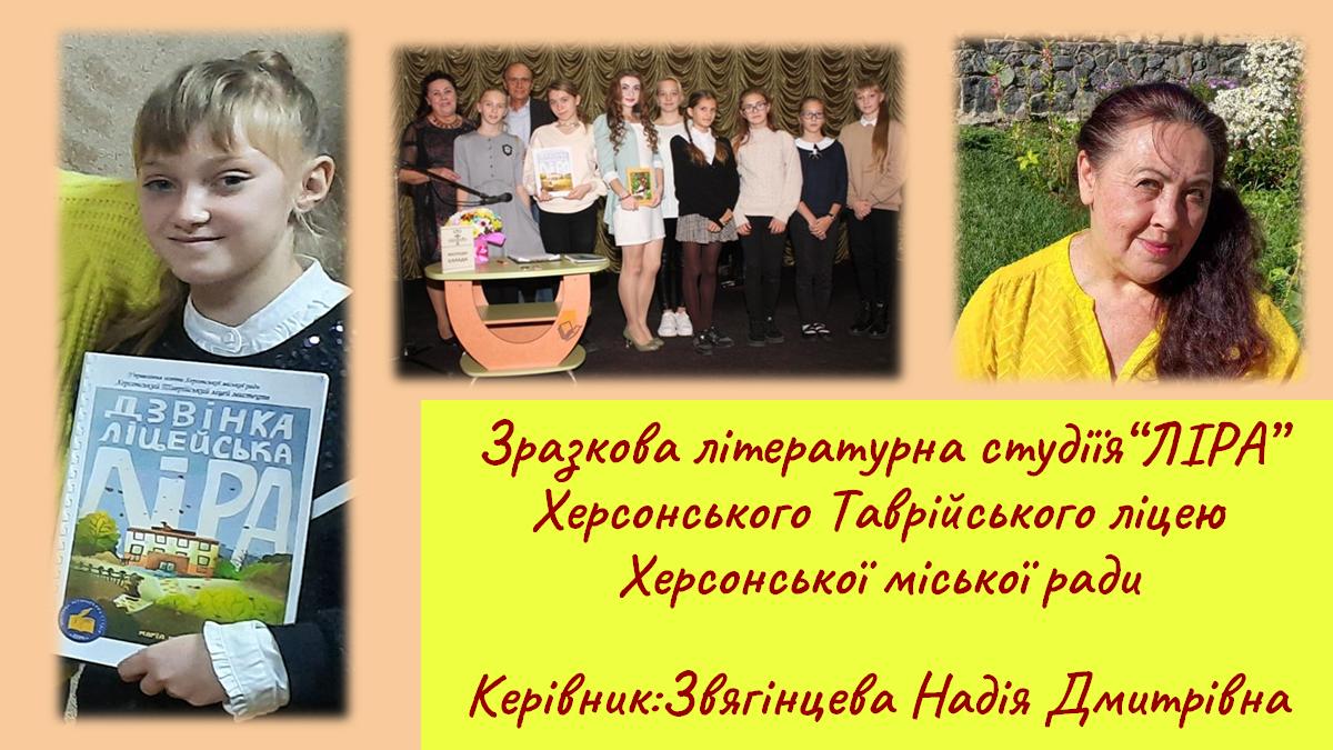 Зразковий художній колектив системи Міністерства освіти і науки України — літературна студія «Ліра» Херсонського Таврійського ліцею — була створена у 1992 році. Саме тоді, коли молода держава шукала власне слово, у ліцеї народився осередок юних поетів, який з часом став творчою лабораторією дитячих талантів.